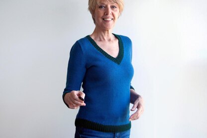 Reintroducing *Marlene *– top down this time and knit up in worsted! This is a slim-fitting, shapely pullover with a deep V-neckline and three-quarter sleeves. Bodice and sleeve hems dip slightly at their centers, echoing the side shaping that follows body curves. Most flattering, if I do say, and a fun project. Enjoy!