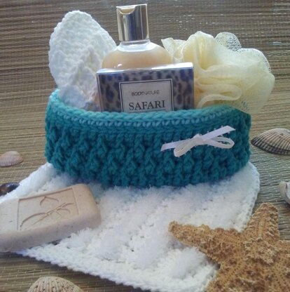 This cute basket works up fast and you are sure to find many uses for it. Washcloths shown in the pictures are NOT included in this pattern but those patterns are available in my shop.