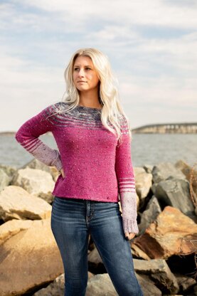 Bring out your inner artist with a whimsical design that lets you make creative decisions as you go, working sections differently based on personal preferences. Marseille uses flat and textured stripes in a seamless, bottom-up yoke pullover. Body is worked i nthe round from the bottom up. Sleeves are worked in the round from the cuff up. Body and sleeves are joined and the circular yoke is worked in the round to the neck bind off.