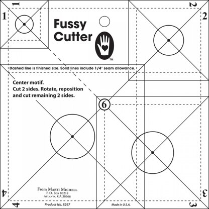 Es macht so viel Spaß, Stücke mit der Fussy Cutting-Technik zuzuschneiden und Motive zu betonen, die eine Geschichte erzählen oder ein neues Design ergeben. Die detaillierten Linien auf einem klassischen Lineal können leicht verwirren. Außerdem musst du rechnen, um die Mitte zu finden, und deinem Augenmaß vertrauen. Du weißt nie, wann du es brauchst, aber das Lineal „Fussy Cutter“ ist „viel zu praktisch, um es nicht zur Hand zu haben“.