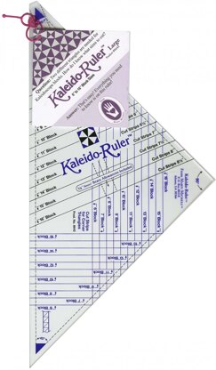 Mit diesem großen Lineal kannst du beide Dreiecke für Kaleidoscope-Blöcke in Größen von 6 bis 16 Zoll einfach und genau zuschneiden.