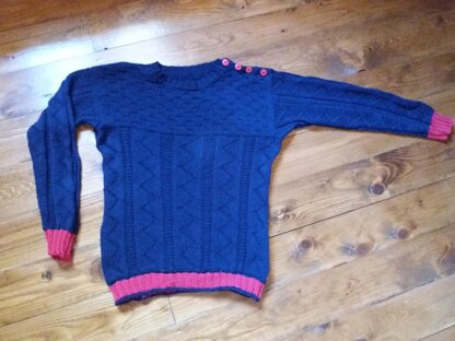 MARTINA - a beautiful jersey for the bairn in DK-weight cotton with button closure on the left shoulder. The pattern is inspired by the fishermen's guernseys. The body until armholes are worked in rounds and the drop-shoulder sleeves with a little gusset to optimize the movement of the arm, are worked flat - sts picked up along armhole and worked towards cuffs or alternately work the sleeves separately and then join in by sewing. The textured pattern to work from chart. To work flat the entire jumper is also explained in the pattern.