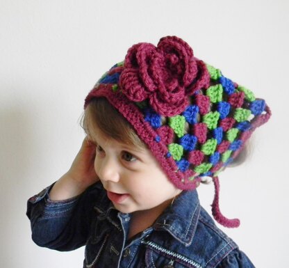 Perfect for a change of seasons, warm and light at the same time... Here is a beautiful kerchief design that is very easy to make. It's based on granny square pattern, which most crocheters have mastered even as beginners. The triangular shape is very accommodating: use it as a head kerchief or a scarf, or increase the amount of rows to turn it into a shawlette or even a full size shawl. It will look great in either way! Make a pretty flower to adorn this kerchief or leave it plain if you like.