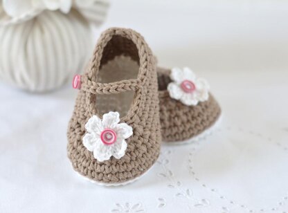 Crochet Pattern for Mary Jane Baby Shoes - lovely for summer - cool, pretty and oh so cute! Make them in softest cotton for comfort and style - beautiful with or without the flower - very pretty and functional shoes - no baby should be without them!