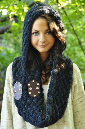 Are you looking for a fashionable way to keep your face and ears warm this Winter? Do you want to wear a face mask but are afraid of looking like a robber? Fear no more, your favorite new Winter accessory is here! Maschera was designed to keep you snug and styling all at the same time. Inspired by the JUL Venetian Hinge hardware used to close the cowl, Maschera features a Basket Cable stitch pattern reminiscent of the Venice canals. The snap closures allow you to wear this design in two ways - as a draped cowl, or wrapped around your head to convert into a face mask. However you choose to wear it, you will look and feel awesome!
