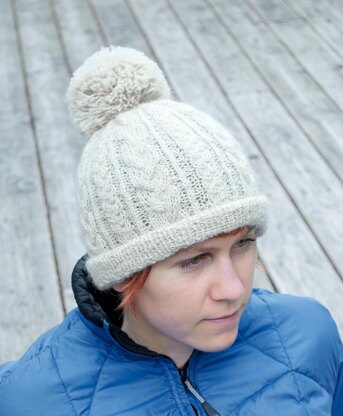 Toasty Massam is a classic ski hat that’s ready for your wintry outdoor adventures – complete with a big fluffy pompom on top. The cable design makes it perfect fireplace knitting: it’s simple yet engaging, and easily memo- rized. Yarn spun from the Massam sheep is soft and silky, giving this hat a beautiful fuzzy halo and lots of warmth.