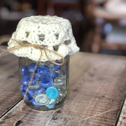 Dress up the mason jars in your home with this cute, quick doily topper. Fill the mason jar with your favorite potpourri, use it to store your favorite snack or fill it with decorative stones. Add a special touch to any tabletop. Or make it as a housewarming or hostess gift for that special friend or family member.