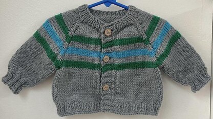Revised and Updates 2023 Great Cardigan, great everyday or sports jacket, knit in the round, top down and absolutely no seams. You can even knit in the buttons. Knit it with stripes or without. Once you finish knitting there are just a few yarn ends to weave in. Sized 6 months to 12 years. Loose fit, and since it is knit top down you can always add length to the body and sleeves as your child grows taller.