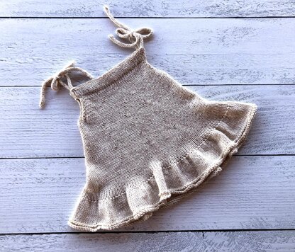 Mayla May is perfect for the tiny princess in your life. This is a simple knitted top with tie shoulders and a simple ruffle. The straps can be adjusted and worn as a tunic top later.