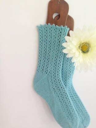 Time to dance around the Maypole in these soft, fluffy open work socks! Maypole makes the perfect summer cottage or car knitting; they're super portable and have an interesting little stitch pattern that's easy to memorize. And until the days turn long and hot, you'll want something cozy on your toes in the cool evenings and mornings.