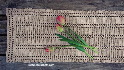 The table runner you can make by following this pattern will measure approximately 31 cm x 95 cm (12.2 in x 37.4 in). The size of this table runner is adjustable.