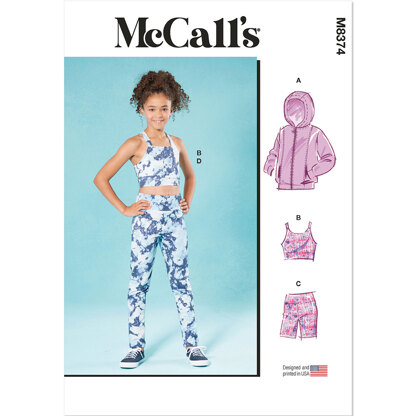 McCall's Girls' Knit Jacket, Cropped Top and Leggings in Two Lengths M8374 - Paper Pattern, Size A (S-M-L)