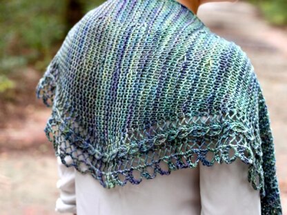 McCowan is a sideways shawlette with an eyelet faux-cable edging that is worked as you go along. Yarnover short rows make for rounded triangle shaping, perfect for a cozy and wearable wrap. And it's just the thing for variegated yarn.