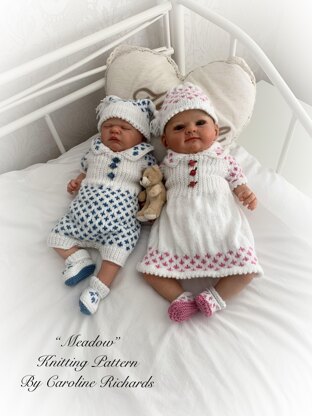 This knitting pattern provides the instructions to make both the romper, tasselled hat and booties, plus the dress, beanie hat and shoes. The pattern is knitted from the top down with easy line by line instructions. There is no need to follow a chart although I have included the chart for reference, so you can quickly see how the pattern forms