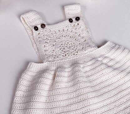 Crochet pattern for a baby dress, featuring beautiful lace details. It's great on its own or with a t-shirt underneath.