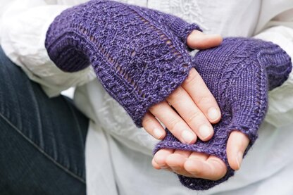 Construction: The mitts are worked in the round from the fingers to the wrist. The thumb is cast on first, then the hand is worked until the point where it is joined to the thumb. The thumb stitches are then gradually decreased.