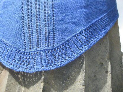 The shawl is knitted top-down in a faroer construction and with a knitted-on boarder.