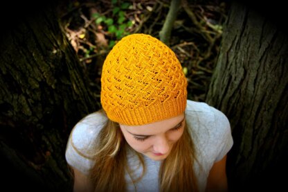 Weaving, turning, twisting, but never wandering too far off course, this zig-zagging design makes for an eye catching accessory! The lacy fabric constructed in lightweight yarn will create a comfy beanie for an early fall or late spring wardrobe. Using a simple repetition of yarn overs and decreases, this pattern includes both the adult and child version. The instructions as shown are for a more fitted hat, however the pattern repeat can be increased to make a slouchy or longer variation if desired.