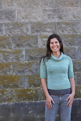Note: This sweater is worked from the top down. Shown in size XS with 3" of negative ease.*