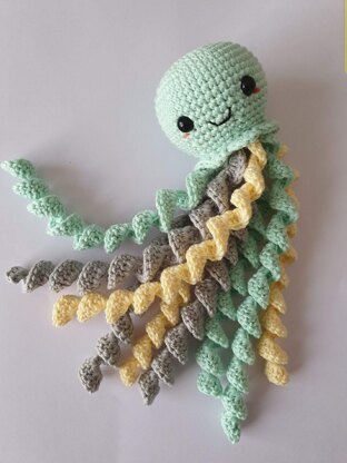La medusa de apego es una adaptación de los pulpos de apego, muy usados en bebés recién nacidos o prematuros, para fomentar el apego y para que se sientan a gusto en sus primeros momentos, debido a que los tentáculos les recuerdan el cordón umbilical. La medusa está tejida en algodón de diferentes colores, necesitarás además ojos de seguridad. En el diseño original usé Madame Cotton de Madame Tricote París y Crochet 3.0mm y uno de 4mm. Necesitarás además 5 a 7 gr de relleno. Aguja e hilo de bordar. El patrón incluye gráficos, explicación vuelta a vuelta, videos explicativos e imágenes de referencia.