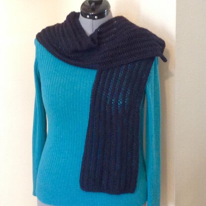 This simple lace scarf has a beautiful drape and is perfect for TV or conversational knitting. It looks great in most weights of yarn, and is delightful in solid, smooth, fuzzy sparkly, gradient or variegated yarn!