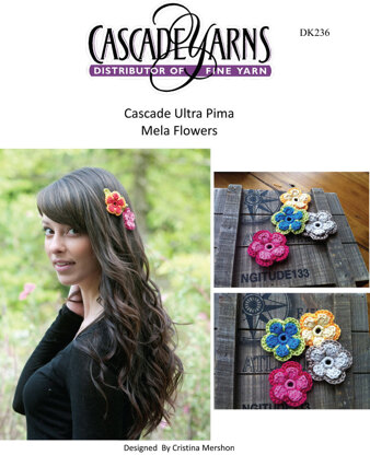 Mela Flower in Cascade Ultra Pima - DK236 ist eine Kostenlos Anleitung zum Crochet von Cristina Mershon, die als Herunterladbares PDF in den folgenden Sprachen verfügbar ist: Englisch. Besonders geeignet ist sie für alle, deren Können bei einzustufen ist. Probiere sie noch heute aus und kreiere dein nächstes Meisterwerk!