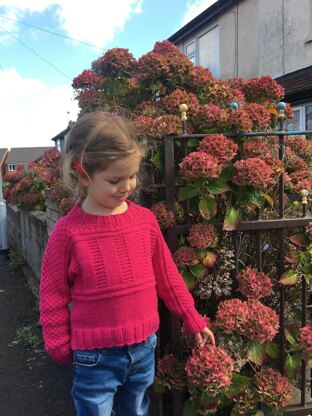 Melanie Jumper is a comfy, cosy, everyday jumper. This design is incredibly practical with its fitted cuffs, loose fit and relaxed rib at the neck making it a brilliant jumper for an active child. The design takes inspiration from traditional jumpers from the British Isles, utilising the beautiful stitch patterns in new and interesting ways. The body of the jumper is worked flat in one piece from front edge, over the shoulders and to the back edge. The cuffs and neck ribbing is picked up and worked in the round to finish.