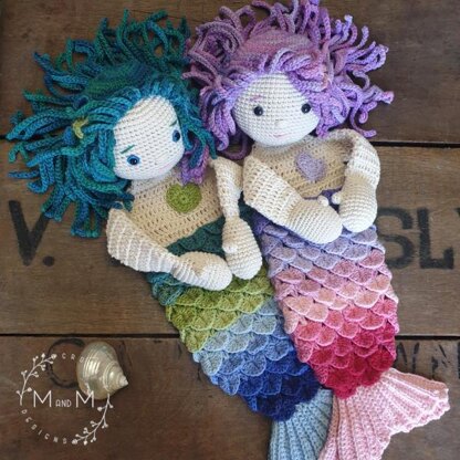 - 10 mm (.39 inch) safety eyes per mermaid, small amount of pink yarn for the mouth