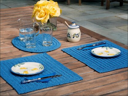 These indigo cotton placemats are just right for casual summer dining out of doors. Perfect for an early morning breakfast or a light lunch under the sun umbrella, their dusky blue colour and open mesh patterning brings a welcome sense of cool even to the hottest of summer days. The pattern includes instructions for two sizes of rectangular placemats and an oval central tablemat which is well-insulated to provide some protection for your tabletop. Both styles are reversible, giving a choice of looks for your next occasion.
