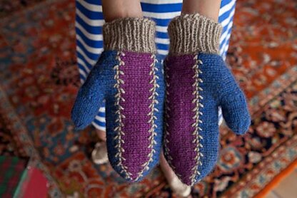 Mittens knit side-to-side and seamed. Top of hand is shaped with short-rows.