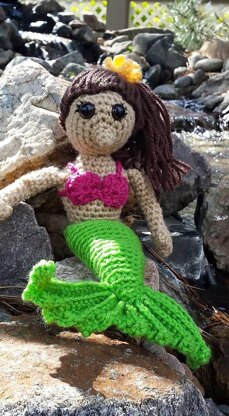 This lovely lady (or gent) is a fun take on the mermaid dolls I had as a kid. She can be under-stuffed at the waist to sit up on a shelf. The hair can be done any number of ways. I have given a basic style, but you can design your own based on the shaping provided.