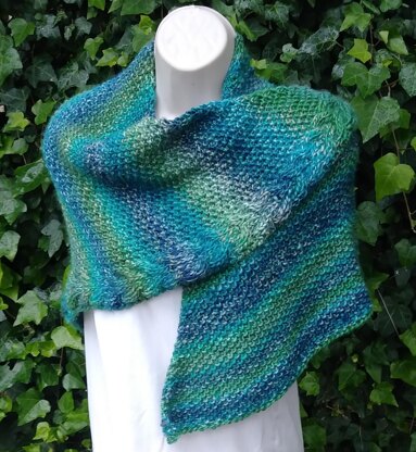 The Mermaid Tail shawl is an asymmetrical shawl, where the increases are hidden on the edge of the seed stitch, and the horseshoe cable, which also happens to look like tail flukes, is worked up the other side. Between tracking the cable rows and making sure you “knit the purls and purl the knits” for the seed stitch, this intermediate-level shawl does not get boring.