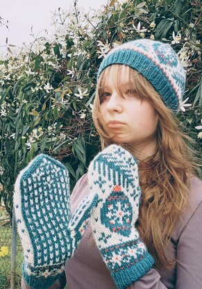 1. Sizes: The mittens are 48 stitches and 61 rounds. With recommended yarn/needles, they will fit a 7.5 – 8” (19-20 cm) circumference hand.