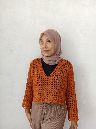 The Messy Mesh Top is a beginner friendly design. It is simple to crochet yet stylish to wear. This pattern is written in English and used US terminology. We used in total approximately of 700 yards DK size yarn for 86cm bust circumference. You can choose any type, colour combination and size of yarn. We can't wait to see your version. Happy hooking!