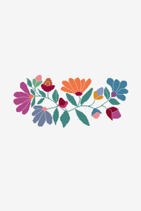 A crown fit for any king or queen! In a colorful combination of bold blues, deep reds, vibrant oranges, this free cross stitch pattern features beautiful Mexican flowers. Use this design to jazz up a plain old tote bag or white tee. For beginner cross stitchers, check out our guide on how to cross stitch!