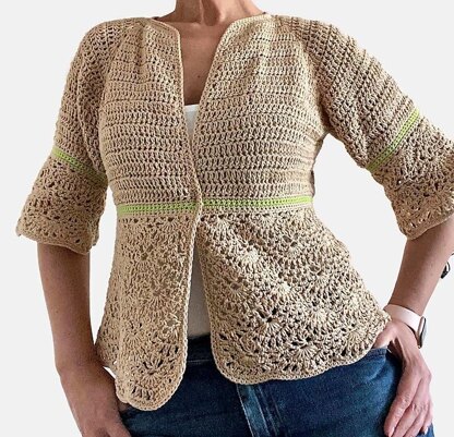 This is a PATTERN for crocheted Summer Jacket! Perfect little Jacket, fun to make and comfy to wear! A lot of photos and detailed description will make it easy to follow! Pattern includes links to videos for the Lace! Skill level: easy/ intermidiate Sizes: XS S M L The pattern is written in STANDARD AMERICAN TERMS! Language - English You will need: • Crochet hook: 4 mm (US G-6) • Yarn weight: DK (11 wpi) Quantity: XS (1090 yards), S (1199 yards), M (1417yards), L (1635yards) (I USED DROPS MUSKAT, COLOUR - 23)