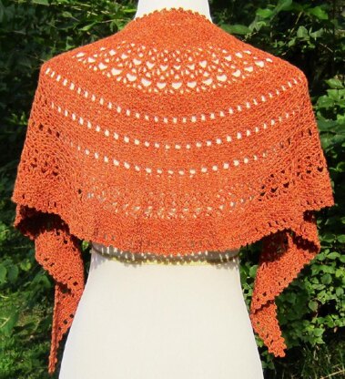 Michele's Lace is a delicate, crescent-shaped shawlette 52 inches (132cm) from tip-to-tip and 12.5 inches (31.7cm) in width (post-blocking). It is worked from the top down and begins with 10 chain stitches.