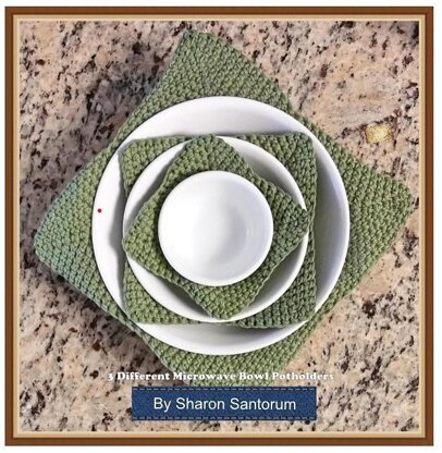 Protect yourself from microwave burns with these bowl potholder collections. (For Bowls: 3/12”, 6” and 8”) Put your potholder on your bowl and place it in the microwave. Cook your food and remove from oven with the potholder already in place. These are easy to make and are very useful. Many pictures to help you along the way with this written-step-by-step pattern. Great Project for beginners.