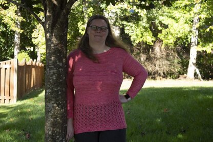The design is knit from the bottom up, and can have the length customized if needed. I have included the lace at the bottom of the sweater and the ends of the sleeves to make sure that there is warmth in the main body of the sweater, but also makes it airy for when it's not super cold.