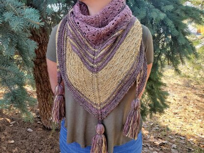 Miette. The beautiful Mountain that can be so clearly seen from the big windows of the Overlander Mountain Lodge. This is the place that many knitting friends came together for a retreat in 2019 but that weren't able to meet again in 2020. This shawl was designed for this retreat! It is a top down triangle full of texture and uses 3 different colors of DK yarn.