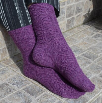 This cuff-down socks feature a textured zig-zag-pattern. Use a solid colored yarn for best results.