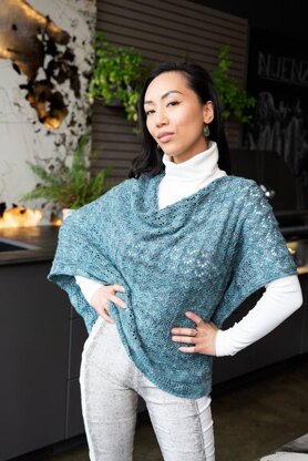 This drapey poncho is the perfect layering piece for warmer weather. A wavey lace border runs along the bottom and an all-over fishtail lace is worked on the rest of the poncho. There are so many ways to wear this too!