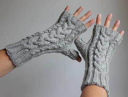 You'll work the mitts from the fore-arm cuffs up in rib, and then transition into a delightful pattern of cable stitches for the body of the mitt. I love how the ribbing flows right into the cable stitch pattern seamlessly. Includes a thumb gusset and instructions for finishing the thumb. End with a few rounds of rib for the finger cuffs.