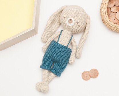 THIS LISTING IS FOR A CROCHET PATTERN (PDF), NOT THE FINISHED TOY. Milu the little bunny. Includes a PDF document of 15 pages with step by step detailed instructions and lots of images to help you along the way. SIZE: If you use the yarn and hook indicated, the bunny will be about 22.5 cm (8.8 inches) tall. You can make it bigger or smaller using another type of yarn but, please, adapt the crochet hook and safety eyes accordingly. MATERIALS: - Yarn ( light brown, white, blue and cream). I used Katia Panama 100% cotton yarn, 50g / 180 m And Hilaturas LM “Cotton Nature” 2.5. · 2 mm crochet hook · Polyester fiberfill · Brown embroidery floss · Tapestry needle · Stitch marker LANGUAGE: This pattern is available in ENGLISH ( using US terminology) and SPANISH.
