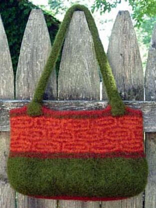Worked in a mosaic stitch this bag is knitted with a single strand of worsted weight throughout, except for handles.