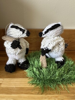 This is a pattern for a little mini badger playing cricket. He can hide a Ferror Rocher or Lindor Chocolate in his tummy, or he can be stuffed and used as a toy or hanging decoration. He can be placed on a knitted grass mat or stood alone or hung up.