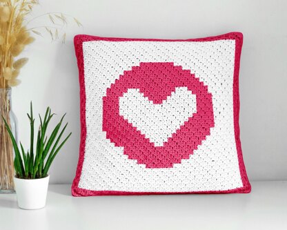 💗 Heart in Circle Pillow Mini Corner-to-Corner (Mini C2C) Crochet Pattern