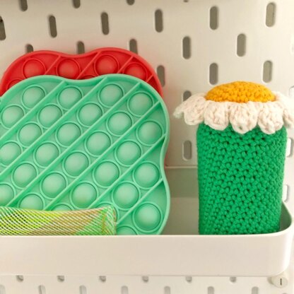 This is a free pattern for a crocheted daisy storage jar using a spice/herb jar, ideal for all kinds of bits and bobs, from your craft room to a girl's bedroom. The flower disc opens like a lid.