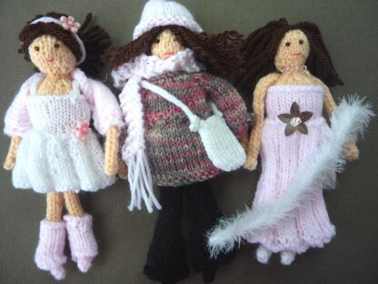 dolls are knitted in the round with dpns icording also used clothes knitted in the round, i-cord and some items are knitted flat
