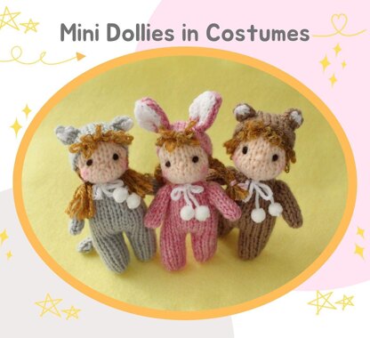 This is a knitting pattern to make three dolls in bunny, bear, or cat costumes. The dolls share the same basic body pattern. All parts are knitted flat and sewn up at the end. No circular knitting is required. The sample is made with 4-ply, however, you can knit with DK (8-ply) yarn if you like. You only need small amounts. Feel free to use your stash.
